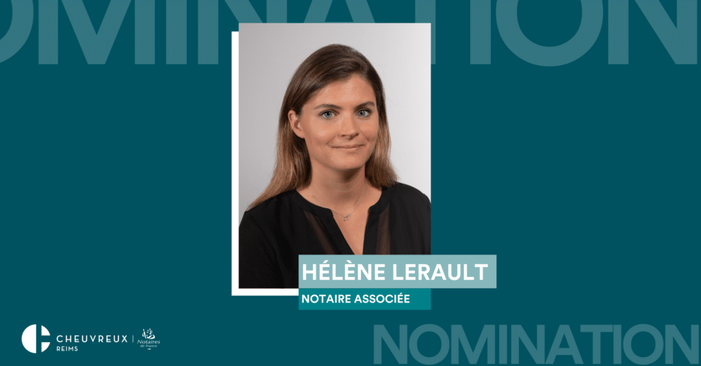 Cheuvreux Reims est heureux d’annoncer la nomination d’Hélène LERAULT, en tant que Notaires Associés. L’Étude Cheuvreux Reims compte ainsi aujourd’hui près de 22 collaborateurs, dont 5 Notaires parmi lesquels 4 Notaires Associés.