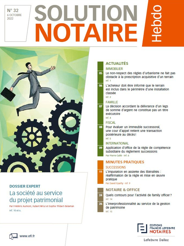 Explications avec Pascale Baussant, conseillère en gestion de patrimoine et fondatrice de Baussant Conseil, Philippe Glaser, avocat à Paris, et Alexandra Rosenthal, notaire chez Cheuvreux Lyon, dans Solution Notaire Hebdo n° 32 – 6 octobre 2022 [Accès abonnés].
