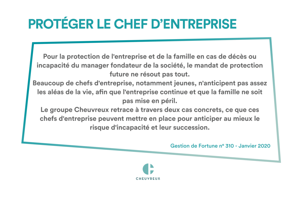 « Protéger le chef d’entreprise », un article à lire dans Gestion de Fortune n° 310 – Janvier 2020.