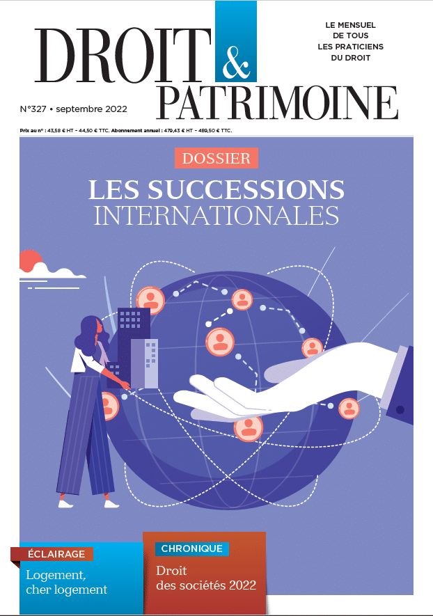 Me Angélique Devaux, Mme le professeur Sara Godechot-Patris, M. Yoan Guillard, Me Diane Le grand de Belleroche, Me Benoît Lelieur, Me Alexandra Rosenthal, Me Jeffrey Talpis et Me Paul Tour-Sarkissian décryptent dans quelles situations le droit de prélèvement s’applique, qui est concerné par ce mécanisme, comment l’exercer concrètement et comment l’anticiper à l’aune d’exemples pratiques dans un dossier « Successions internationales », à lire dans Droit & Patrimoine n° 327 – Septembre 2022 [Accès abonnés]
